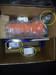 The highlighted sections show the locations and packaging where it is important to take note of. It is a good idea to pack a box inside another box.This will prevent it from damage, but it is also important that this box cant move. To prevent extra movement we add packaging to the sides. In the above items you can see these sections highlighted.